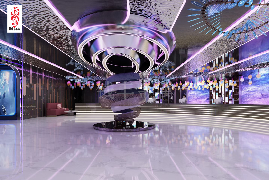 不锈钢水波纹板具有其独特的设计风格和优势,为KTV的装饰创造了更多可能性。首先,不锈钢材质的选用保证了板材的耐久性和良好的防腐性能,使其能够经受住长时间的使用和清洁,同时还能保持表面的光洁度,提供给消费者一个整洁舒适的环境。